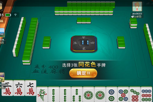 这是血流麻将的特色玩法之一,在游戏开始之前,摸牌结束之后,场上的四名玩家分别选出自己不那么需要的三张同样花色的牌,与场上的其他玩家进行交换。