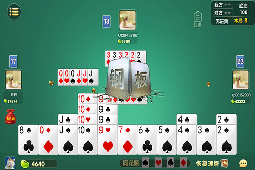 3.不出与对手相同牌型的牌。我们经常可以看到掼蛋的记牌技巧中提到说要记住场上玩家掌握牌权后打出的第一手牌,目的就是为了这个。对手先出手的牌一定不能主动出手,因为这也是在帮对手走牌。如果玩家非常需要此类牌型,那也可以先打自己压不住的,然后打一张对手不要的牌,等着对手压制后打出你现在也需要的这类牌。