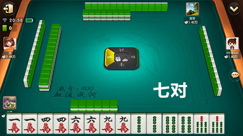手牌中全部是对牌,并且玩家在整个游戏过程中位进行任何碰的操作(门前清)。