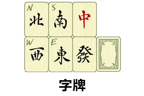 从麻将牌上可以看出每张都包含一个中文字,其名由此得之,每个字牌都有相同的4张,因此风有16张、箭有12张,字牌合计28张。