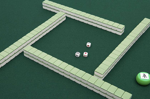 麻将牌洗均匀之后每人门前各18墩(两张牌上下摞在一起为一墩)36张牌码成牌墙,四人牌墙左右连接。