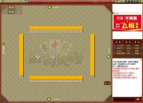 ③"东"的位置玩家掷色子,根据点数按顺时针方向确定庄家。